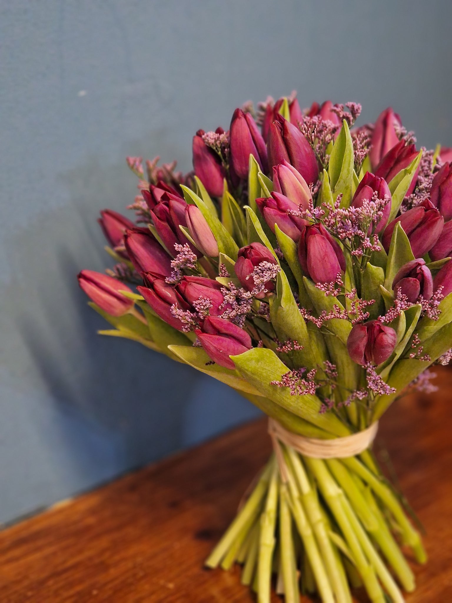 As availability of flowers can change, all our online bouquets are based on colours and we cannot guarantee that they will look exactly the same as the online image on delivery. We will do our utmost to ensure you will receive your chosen colour using a combination of fresh, beautiful flowers.